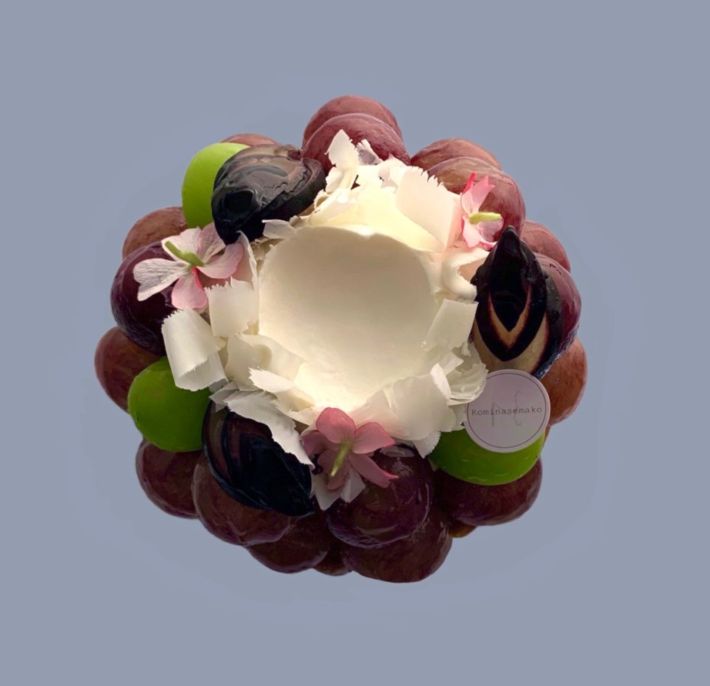 ーーーーーーーーーーーーー 特注ケーキのご紹介。 お世話になっている先輩夫妻の結婚&新居祝いに、 旬のおいしいフルーツで華やかなケーキをご要望。 旬の葡萄のタルトを 梨のフリルで華やかに演出させていただきました。 手毬み…