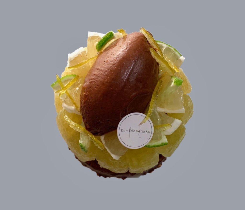 ーーーーーーーーーーーーーー 特注ケーキのご紹介 食べるのが好きな女性へ贈られるそう。 なので食べ応えがあって 香りや食感に特徴があるケーキをご要望。 「食感」と「食べ応え」というキーワードから 求肥に包んだ 柑橘の雪見…