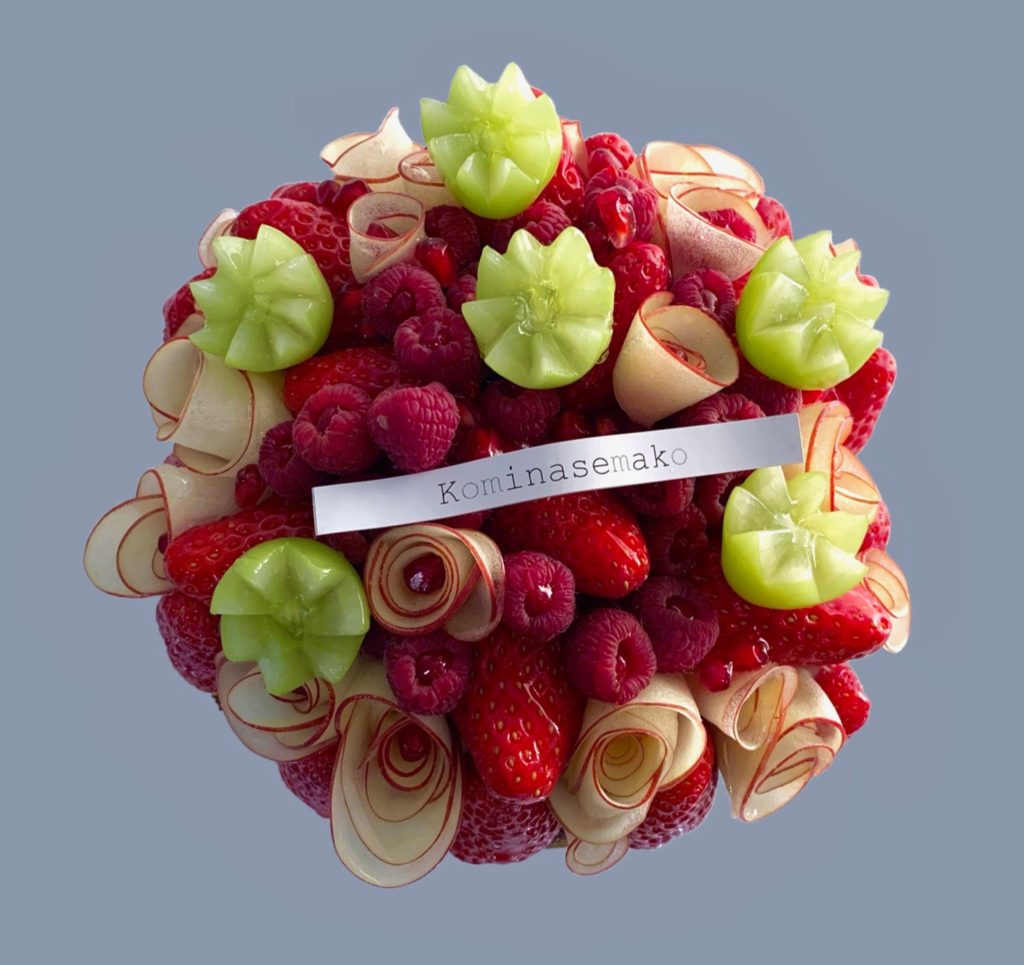 。。。。。。。。。。。。特注ケーキのご紹介 女性のお誕生日に 「果物多めで赤バラとかすみ草の花束のような 赤多めの白が混ざった花束のような華やかなケーキ」をご要望。 このぐらいのサイズまでは こんもりとラウンドブーケに…