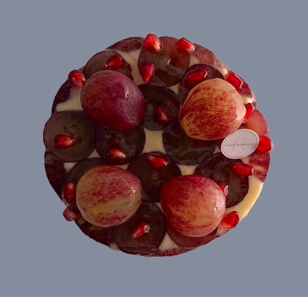 特注ケーキのご紹介。。。。 1周年記念日に それと分かるよう、 そしてケーキを見て彼が笑ってくれる 明るい未来が築けるような フルーツたくさんのケーキをご要望。 希望に満ちた一番星をイメージして 明るい色の ぶどうのタル…