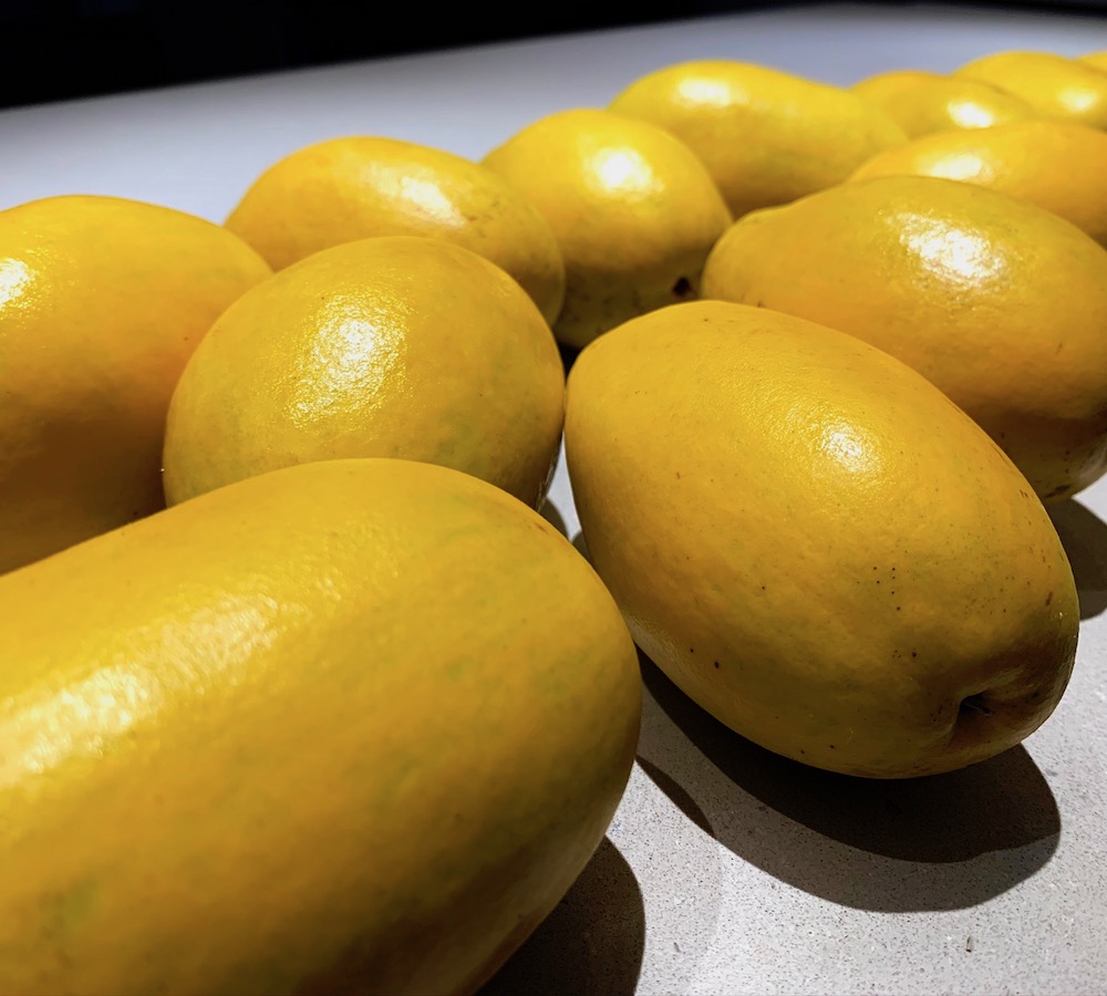 幼い頃、 裏のお庭に花梨の木があったらしく 祖母が 「今年は5つほど実ったよ」 とか言って、 私に香りを楽しませてくれたのを 今でも鮮明に覚えている。 鮮やかすぎるくらい艶やかな黄色と 華やかに放つ香りとは対照的に その…