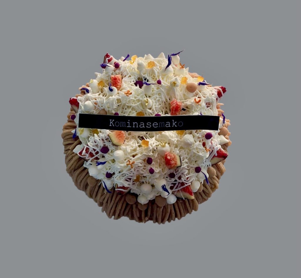 特注ケーキのご紹介 個人的に栗のタルトと黒いちじくの組み合わせが大好き。 和食のお店の周年祝いと伺ったので 落ち着いたトーンの栗のケーキに 風花を舞わせておきました。 少しでも華やぐようにね。