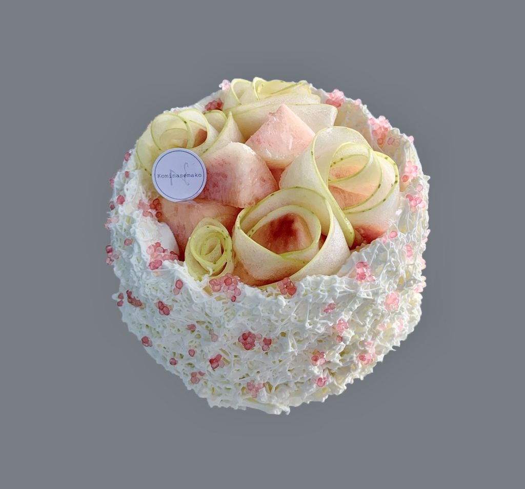 特注ケーキのご紹介 お母様のお誕生日に「桃」と「ライチ」を使った「白い」ケーキをご要望。 桃の香りとライチは軽やかで華やかなトーンの香りを持つ。 ケーキに仕立ててもとても相性がいい組み合わせ。 お誕生日らしく可憐な白いケ…