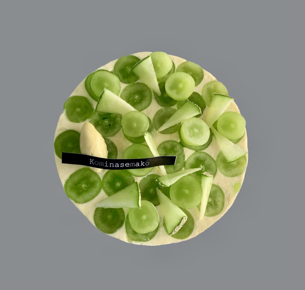 特注ケーキのご紹介 お誕生日ケーキをご要望。 いつも大きな6号サイズでのご注文。 今回はシャインマスカットとメロンで 爽やかなグリーンのケーキをご用意しました。