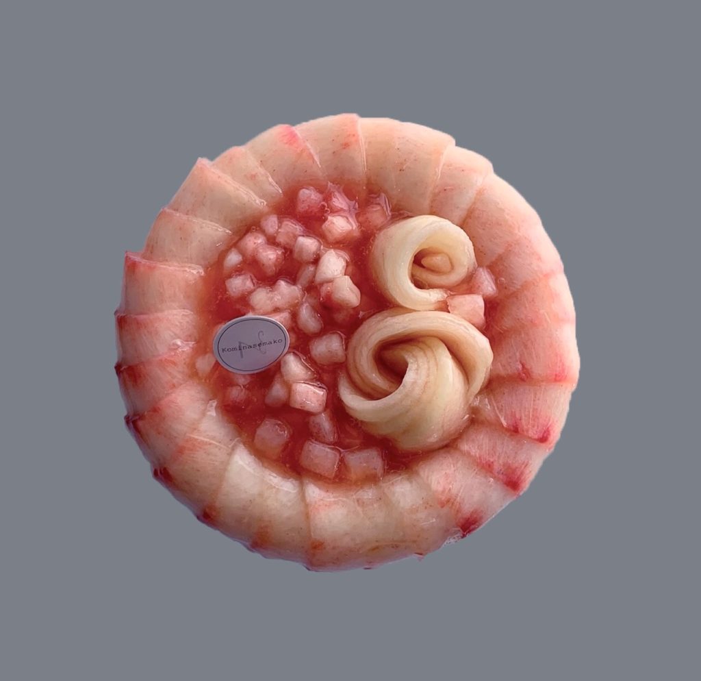 特注ケーキのご紹介 お誕生日ケーキをおまかせで。 すももの魅力を再発見! 光に透かした果肉は 驚くほど可愛らしい色気を放った。 自然界の蛍光色ってなんだかゾクゾクする。